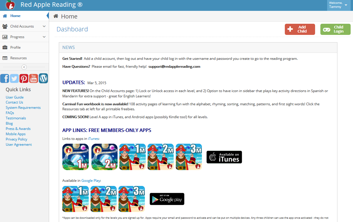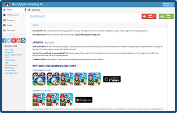 Red Apple Reading® offers products and services on its website www.RedAppleReading.com, which includes online programs as well as apps with a host of instructional videos and activities to help young children learn to read in English. All features, content, specifications, products, and prices described or depicted are subject to change at any time without notice. Red Apple Reading® will make all reasonable efforts to accurately display the content and specifications of services and to notify customers of changes, however the accuracy of the services provided and display of the webiste may depend on your computer system, and Red Apple Reading® cannot guarantee that your computer will accurately display or operate the products and services described. The inclusion of any products or services at a particular time does not imply or warrrant that these products or services will be available at any time. It is your responsibility to obey all applicable local, state, and international laws in regard to the posession and use of any products or services purchased from the website. By using the products and services on this website, you represent that all products or services ordered (including apps) will be used in a lawful manner. All products and services are sold for private, home use or educational institution use only and may not be copied.